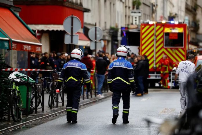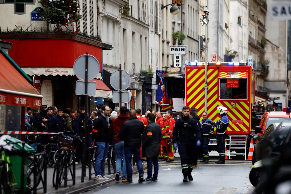 Polícia francesa e bombeiros protegem uma rua depois que tiros foram disparados matando duas pessoas e ferindo várias em um distrito central de Paris, na França, nesta sexta, 23 de dezembro — Foto: Reuters