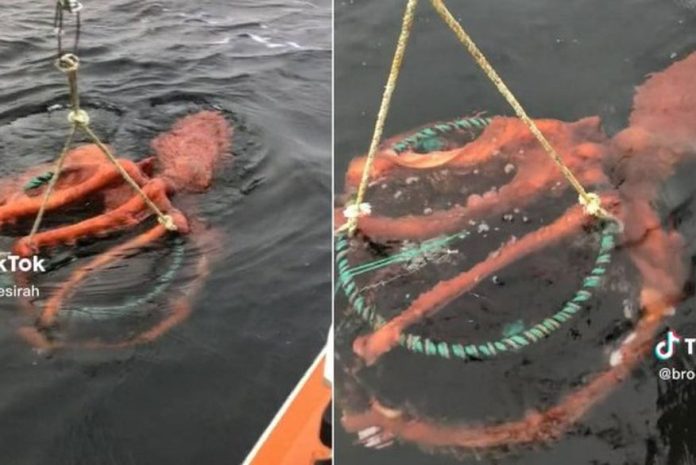 Pescadores de camarão levaram um susto ao puxarem uma armadilha em Alberni Inlet, enseada da ilha de Vancouver (Colúmbia Britânica, Canadá): de “brinde” veio um gigantesco polvo-vermelho agarrado à gaiola. O incidente ocorreu em 28 de dezembro.