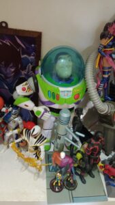 R: Sim, eu sou colecionador de brinquedos. Tudo começou desde criança, juntando aqueles brinquedos que eu tinha na época de infância e eu sempre gostei. E aquilo que eu não tinha na infância, depois de adulto eu fui comprando, fui gostando, nunca deixei de gostar de colecionar bonecos principalmente. Eu gosto de expor na minha estante os meus bonecos. É algo que já vem desde infância eu diria.
